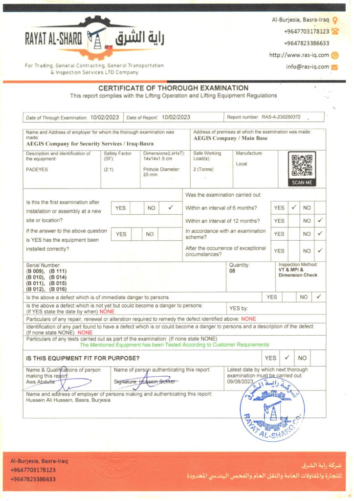 LIFTING INSPECTION