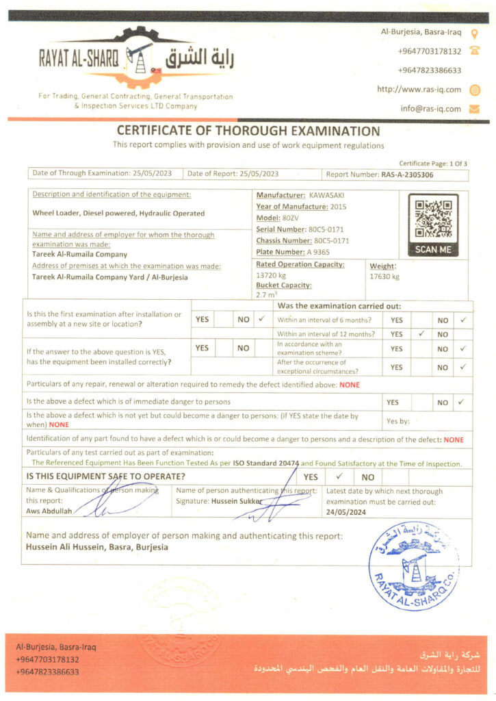 LIFTING INSPECTION