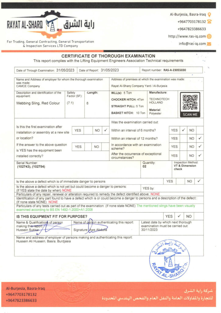 LIFTING INSPECTION