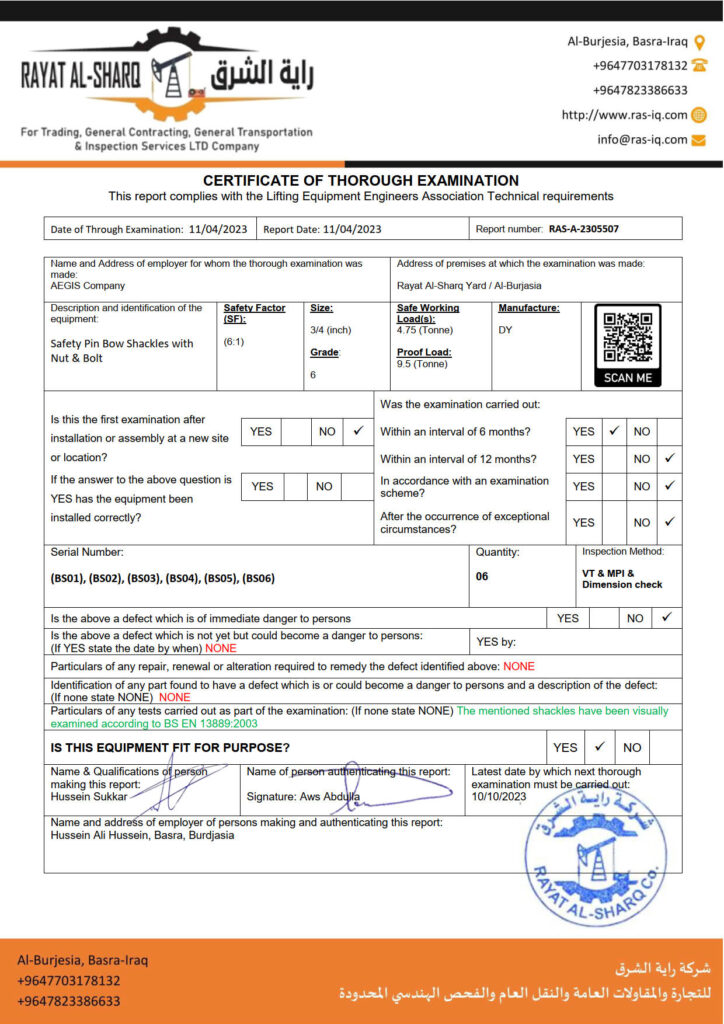 LIFTING INSPECTION