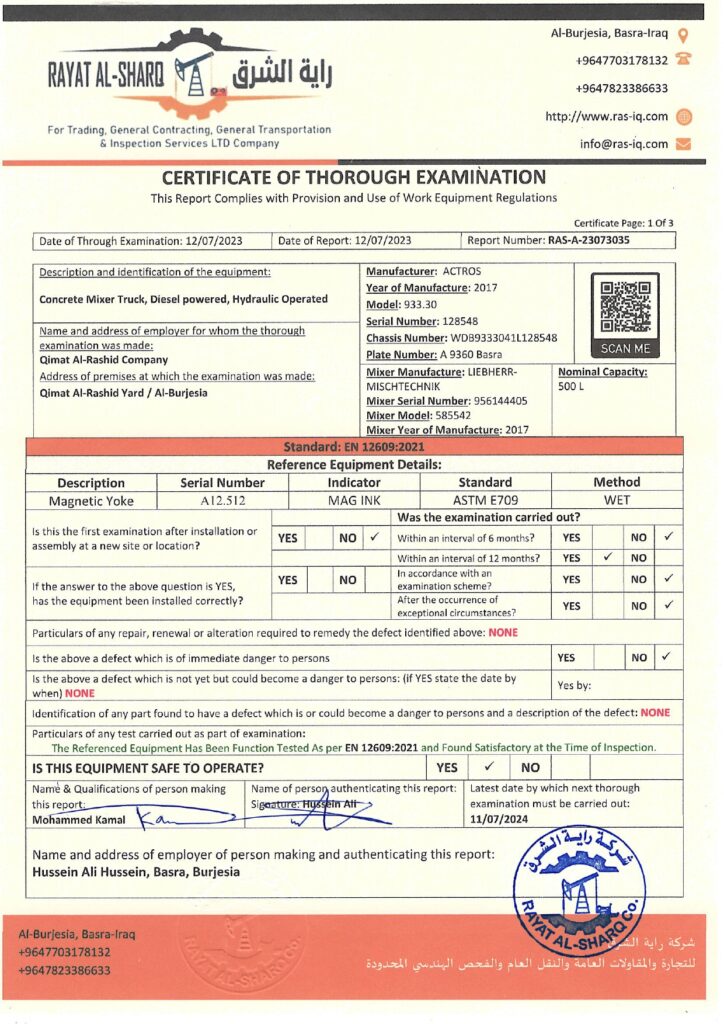 LIFTING INSPECTION