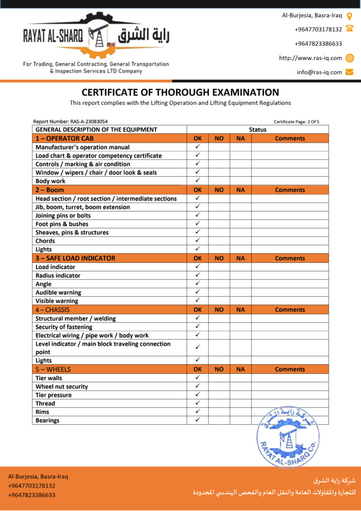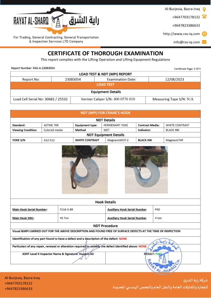 LIFTING INSPECTION