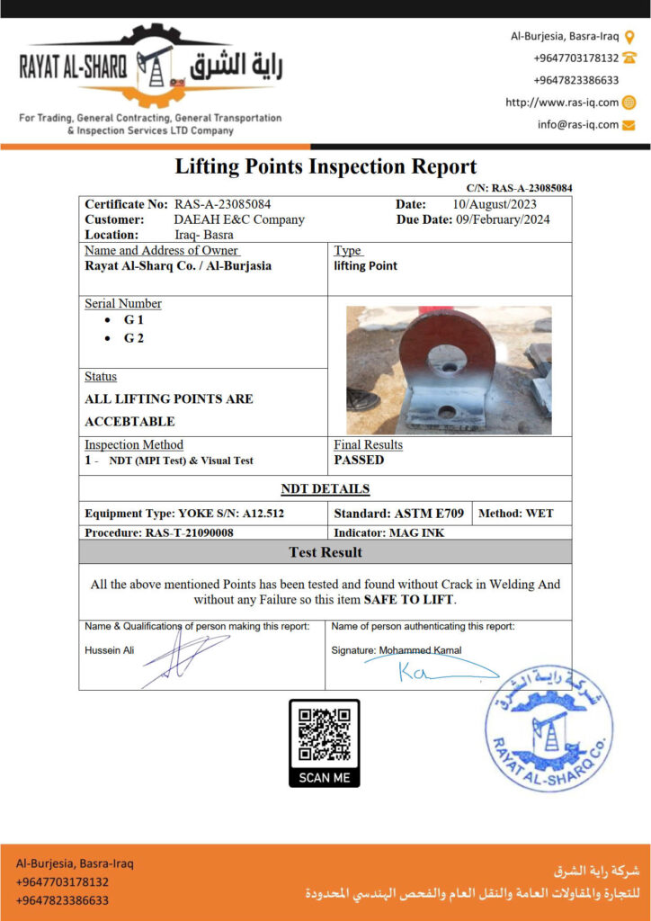LIFTING INSPECTION