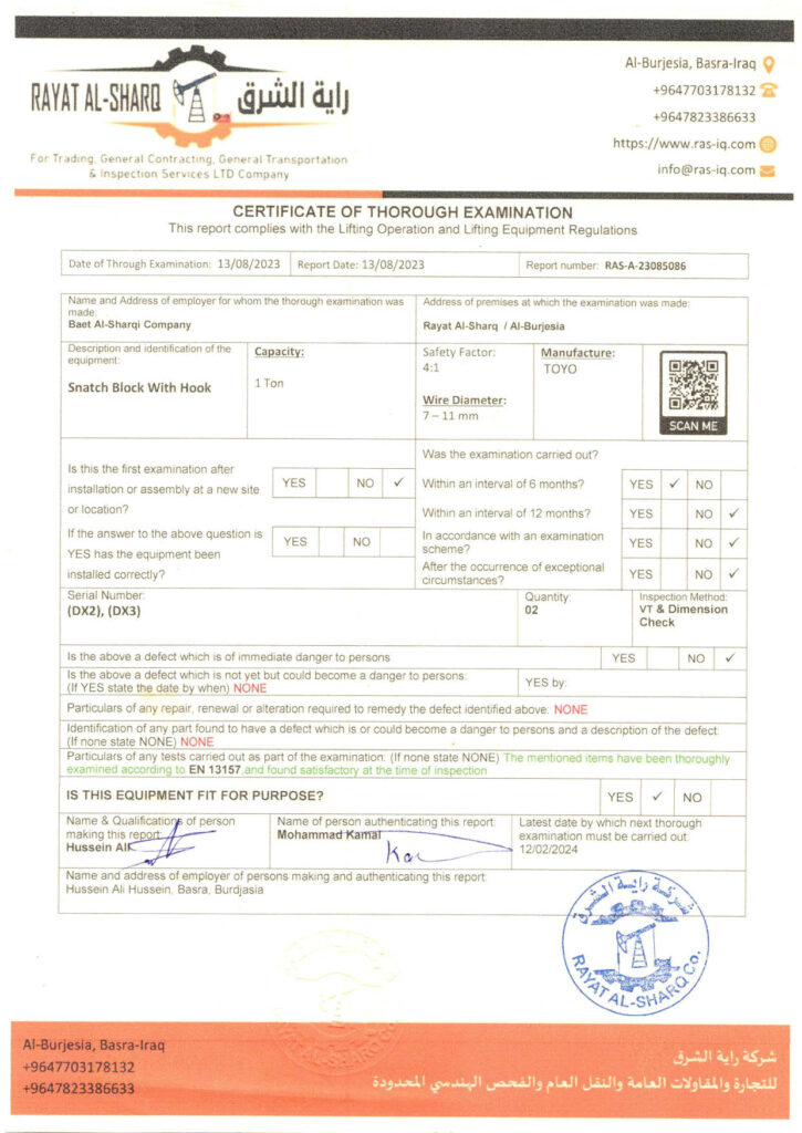 LIFTING INSPECTION