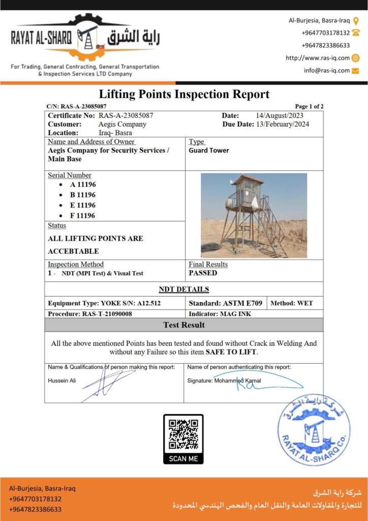 LIFTING INSPECTION