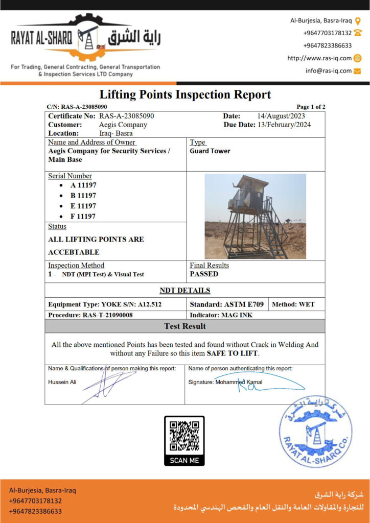 LIFTING INSPECTION