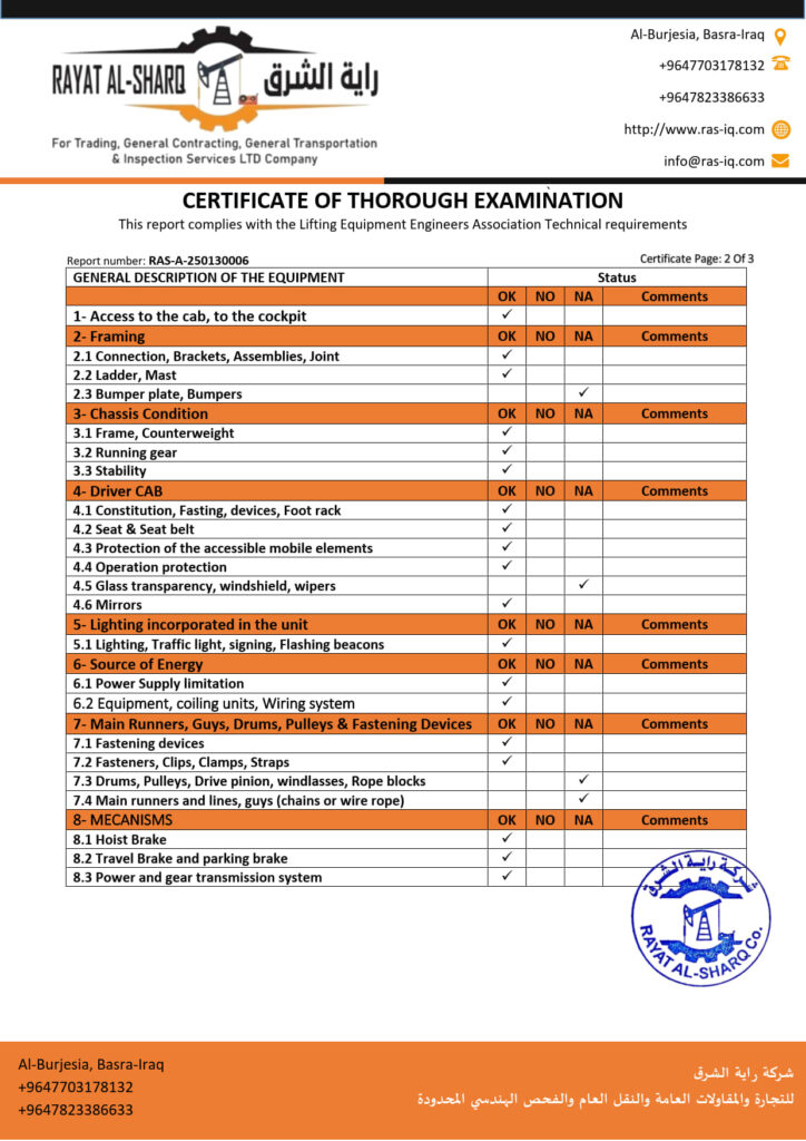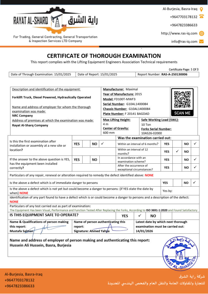 LIFTING INSPECTION