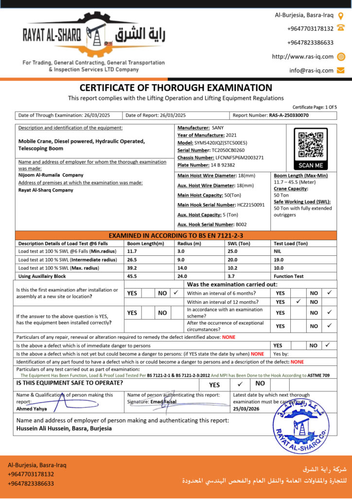 LIFTING INSPECTION