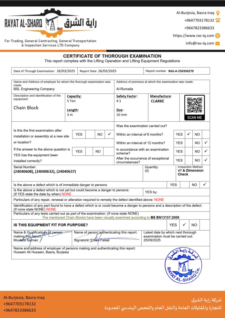 LIFTING INSPECTION