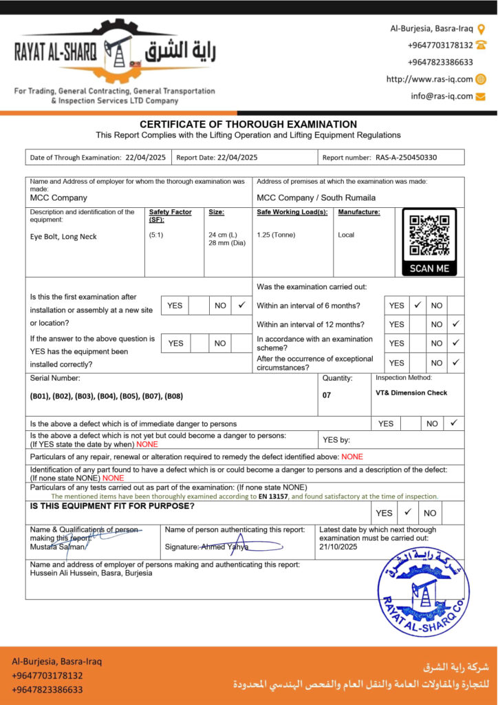 LIFTING INSPECTION