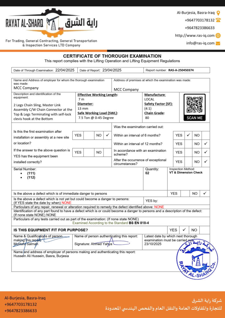 LIFTING INSPECTION