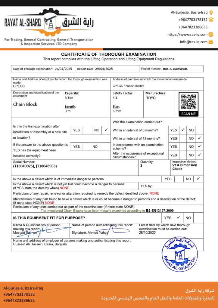 LIFTING INSPECTION