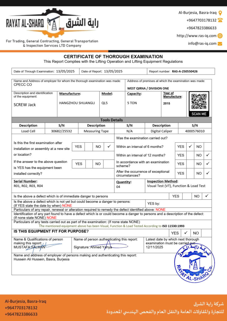LIFTING INSPECTION