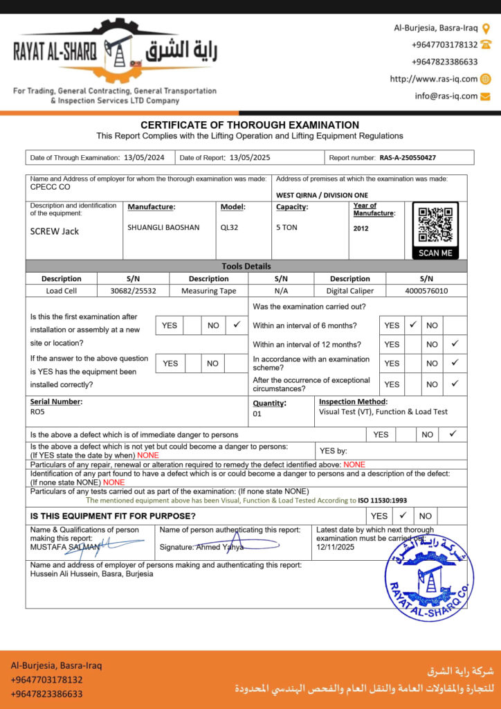 LIFTING INSPECTION