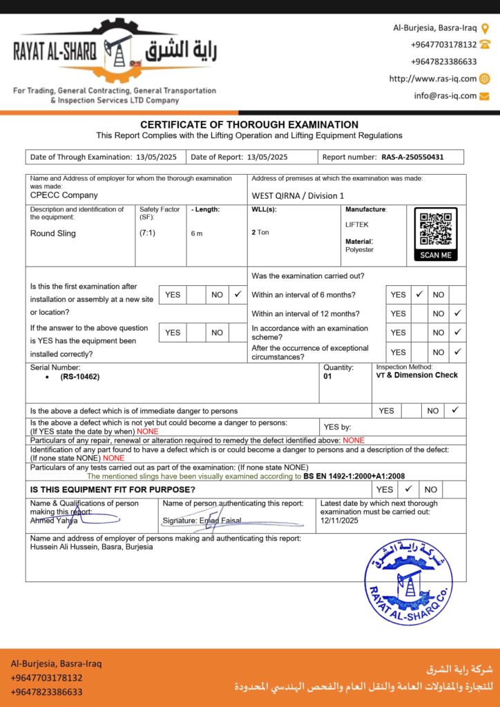 LIFTING INSPECTION