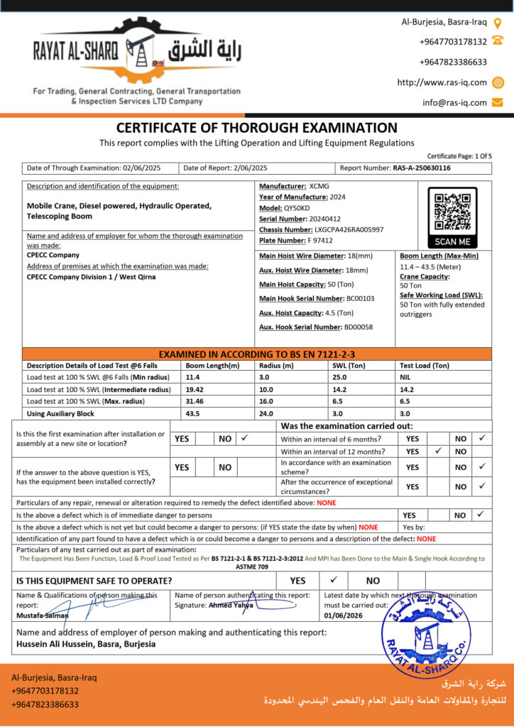 LIFTING INSPECTION