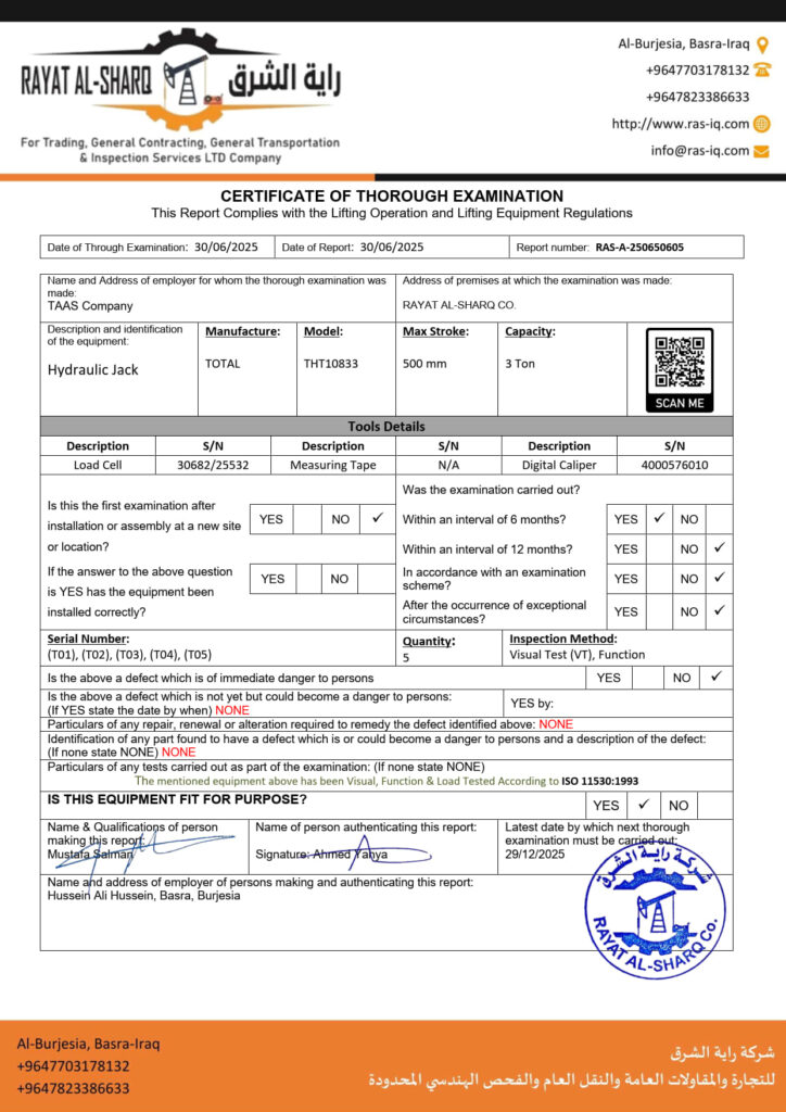 LIFTING INSPECTION