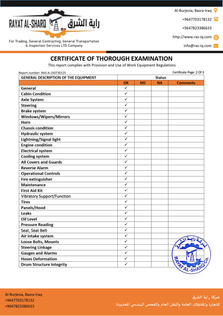 LIFTING INSPECTION