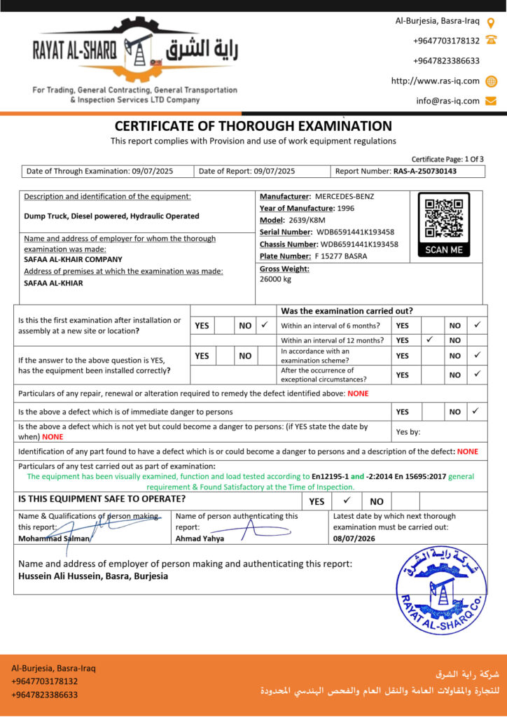 LIFTING INSPECTION