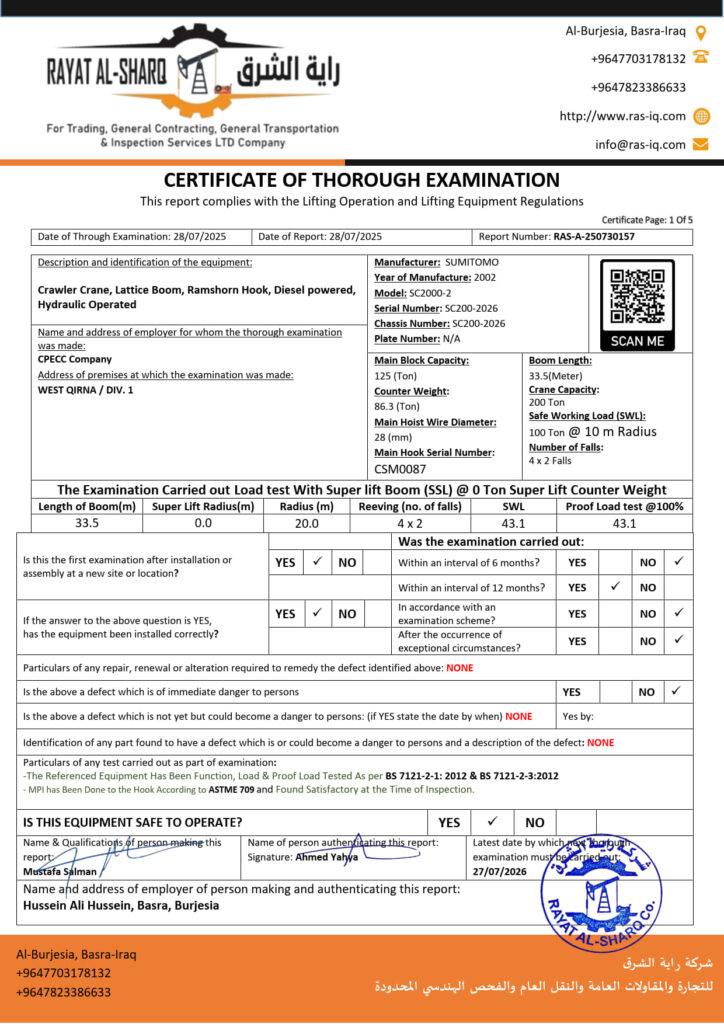 LIFTING INSPECTION