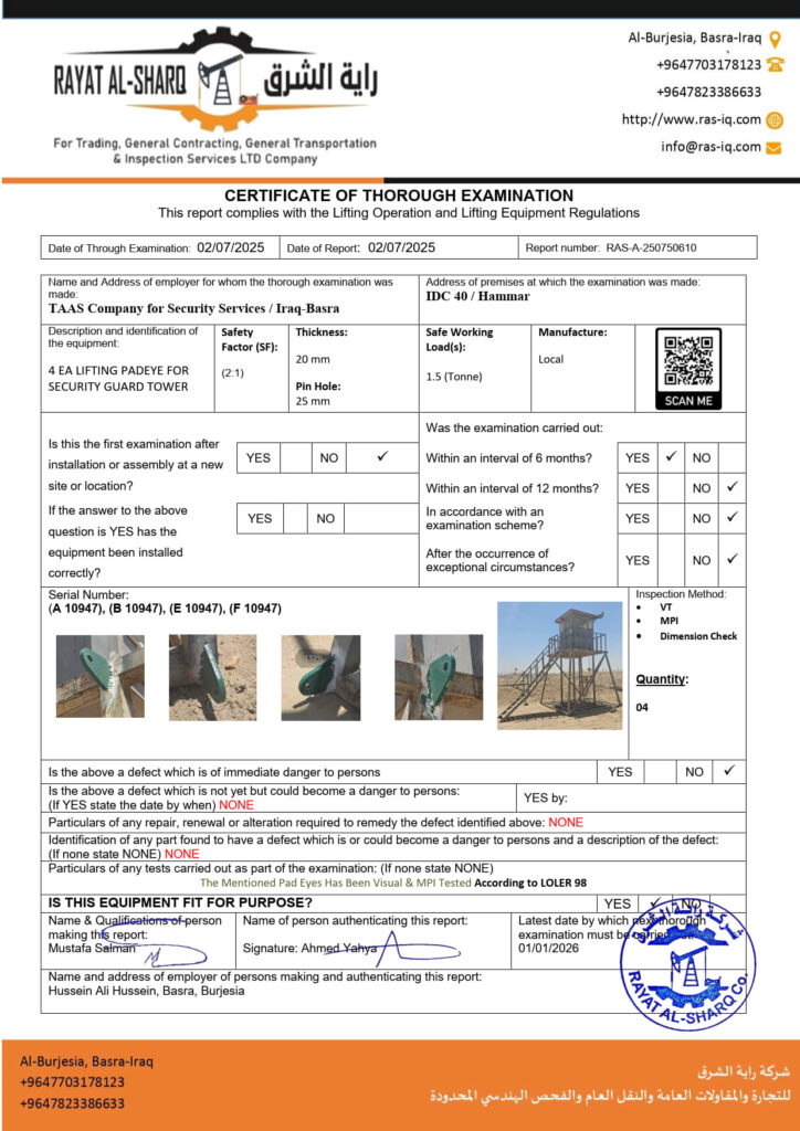 LIFTING INSPECTION