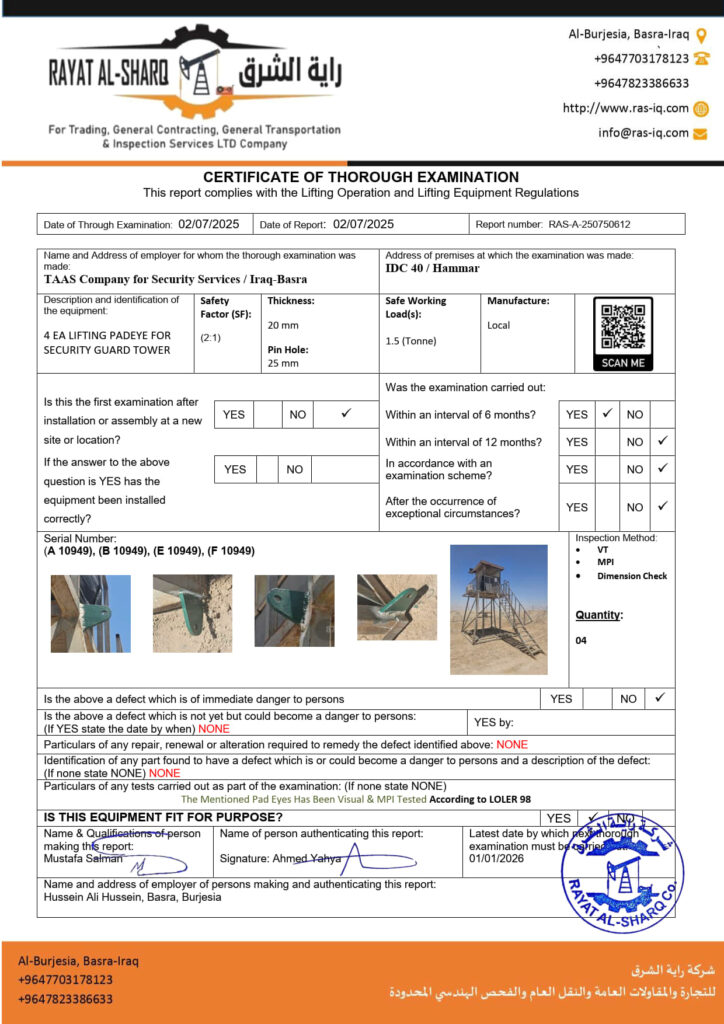 LIFTING INSPECTION