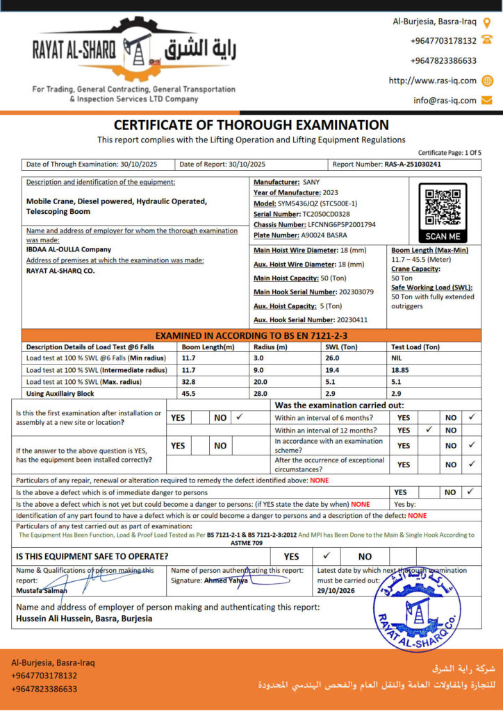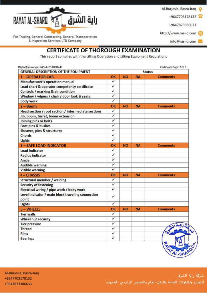 LIFTING INSPECTION