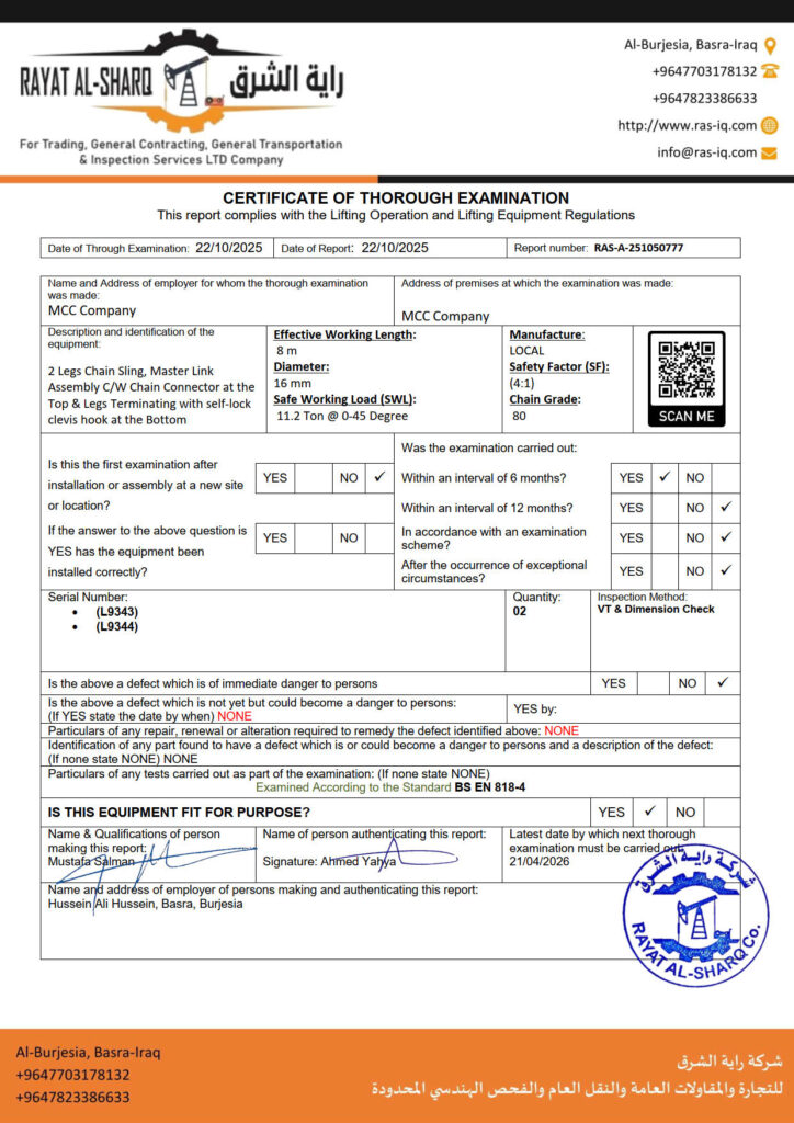 LIFTING INSPECTION
