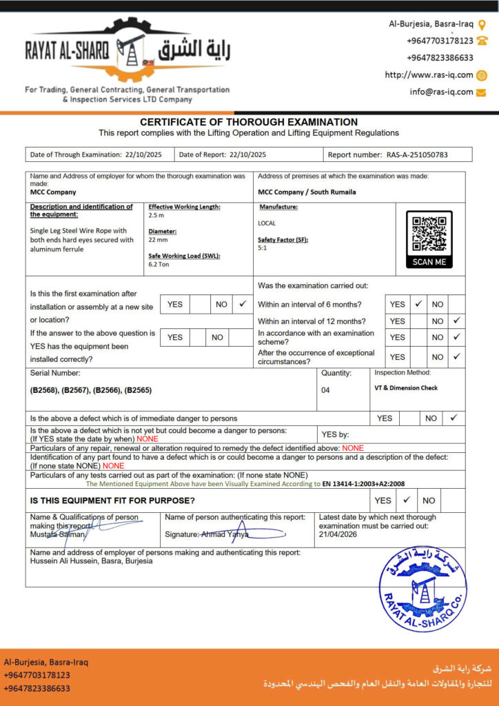 LIFTING INSPECTION