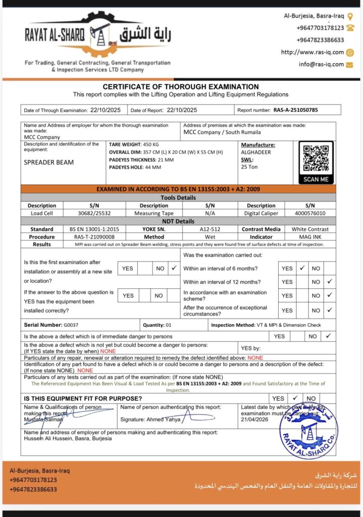 LIFTING INSPECTION