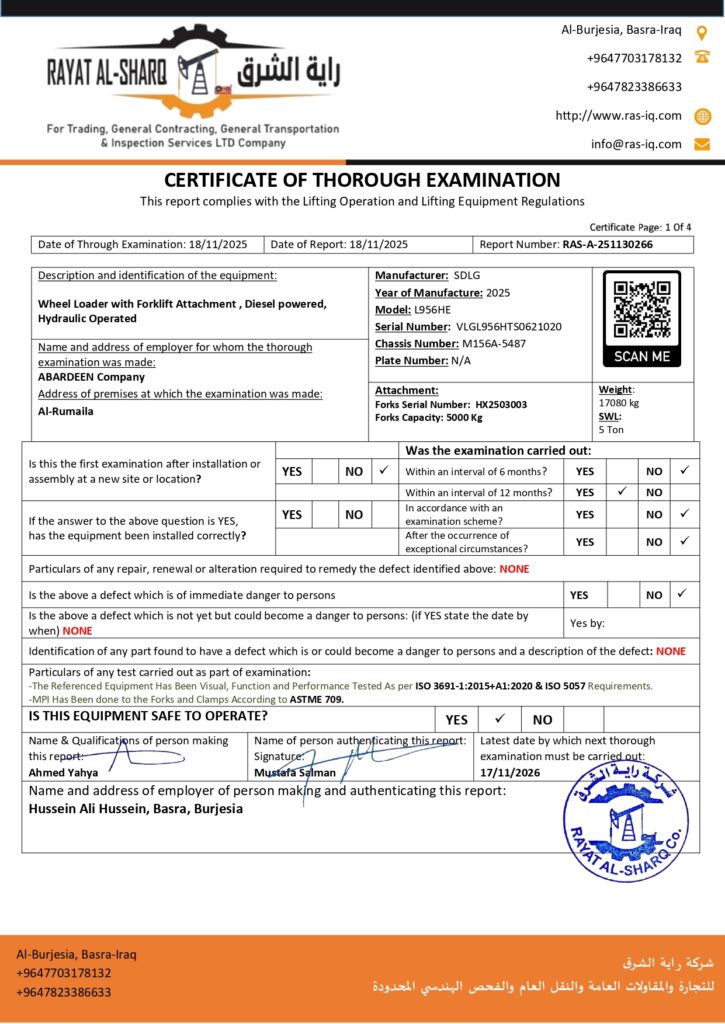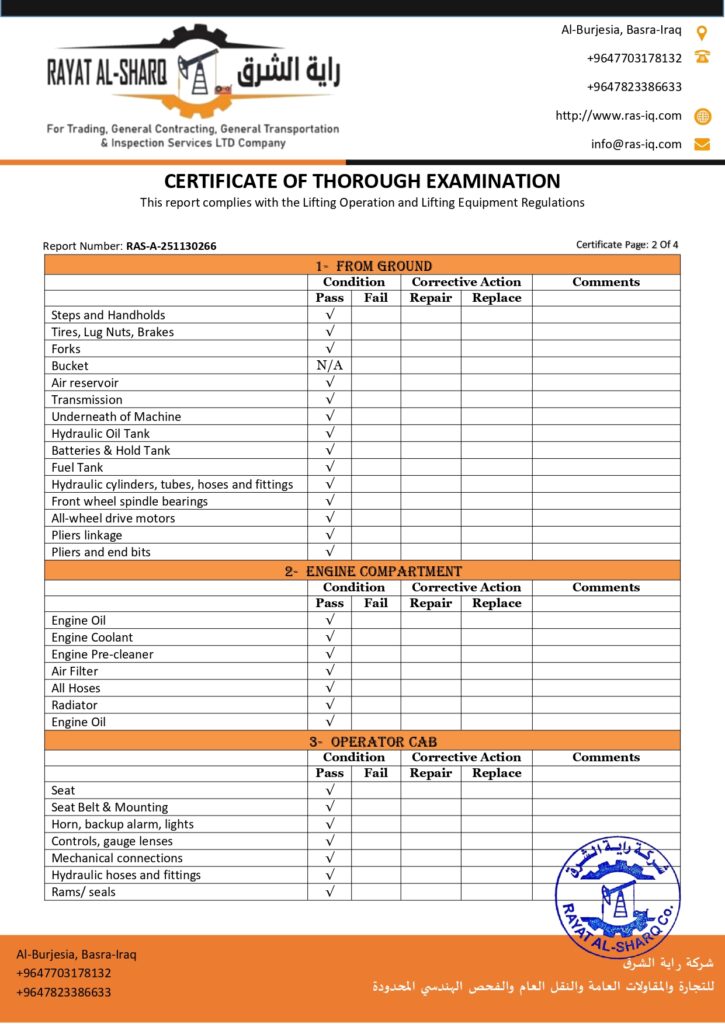 LIFTING INSPECTION