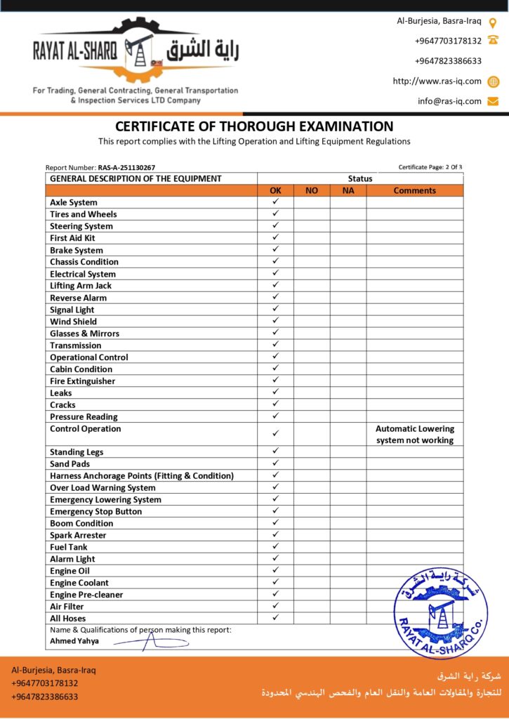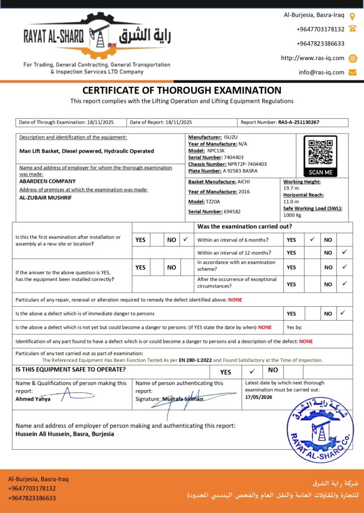 LIFTING INSPECTION