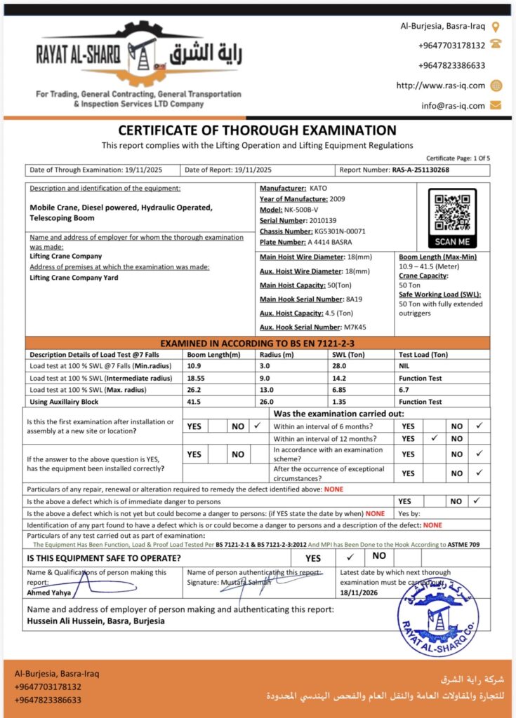 LIFTING INSPECTION