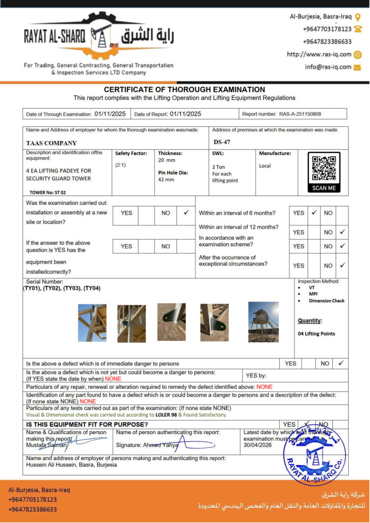 LIFTING INSPECTION