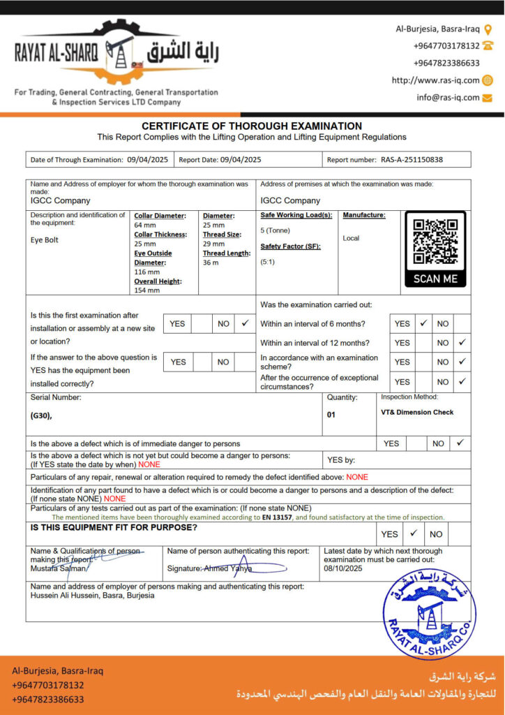 LIFTING INSPECTION
