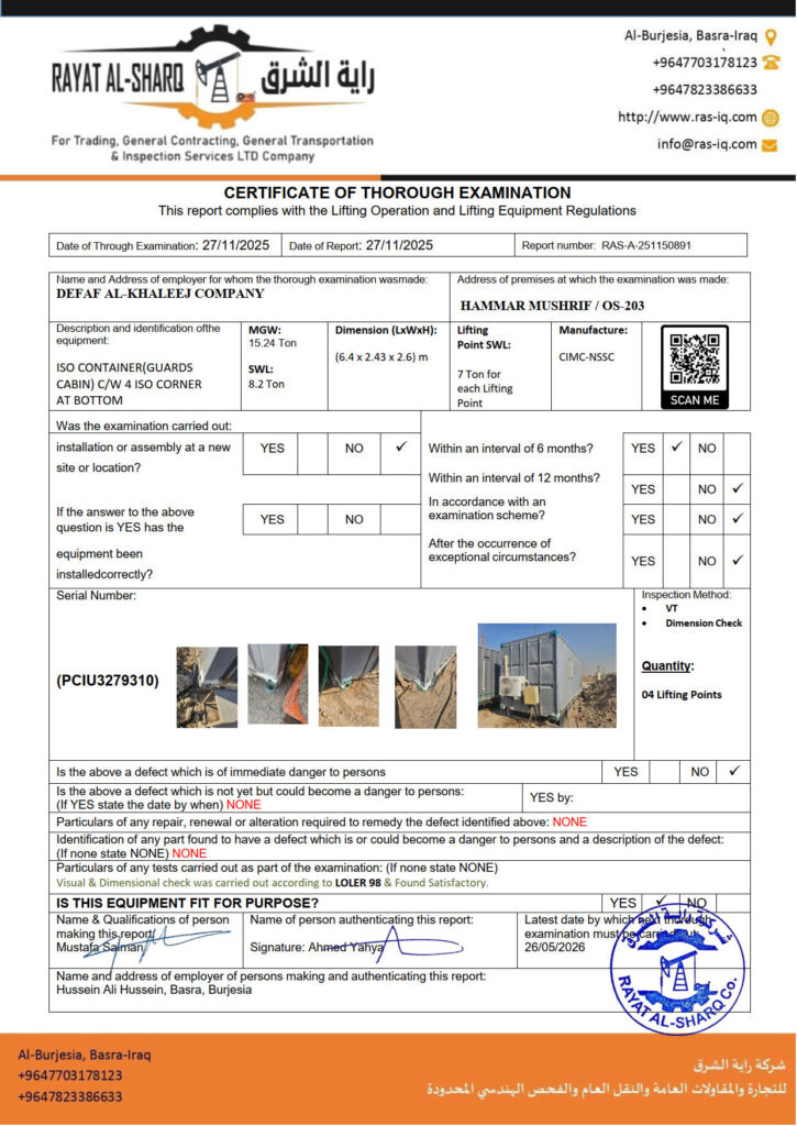 LIFTING INSPECTION