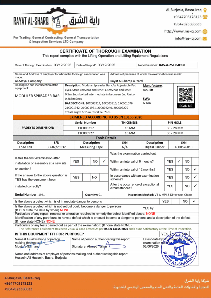LIFTING INSPECTION