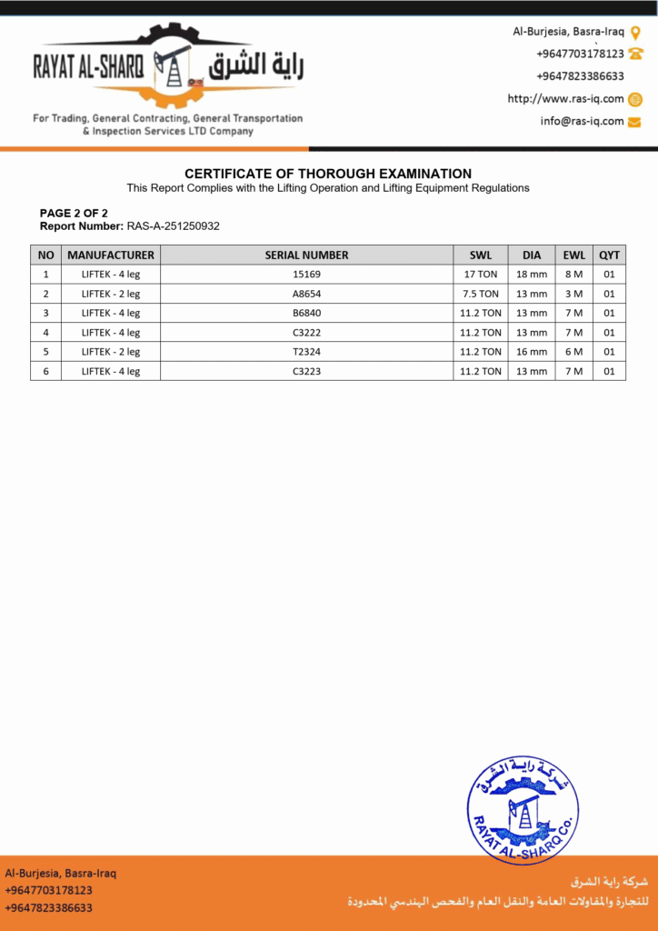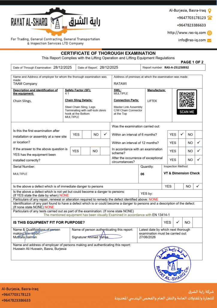 LIFTING INSPECTION