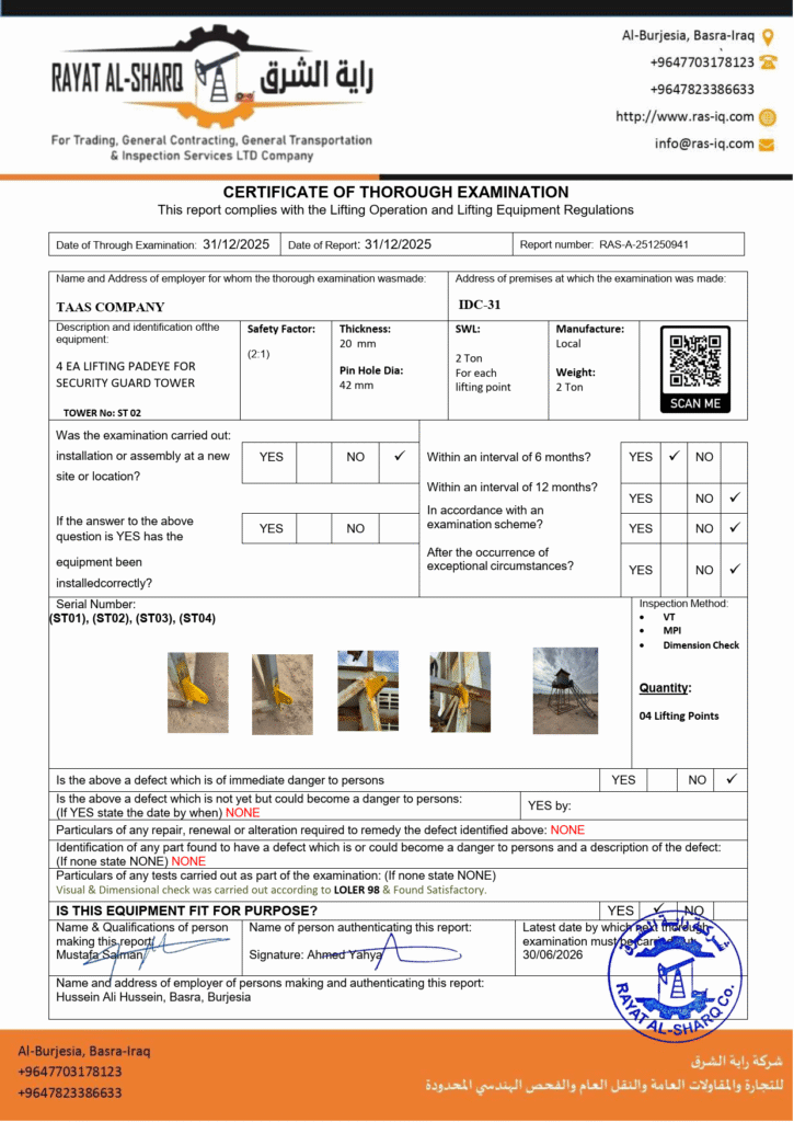 LIFTING INSPECTION