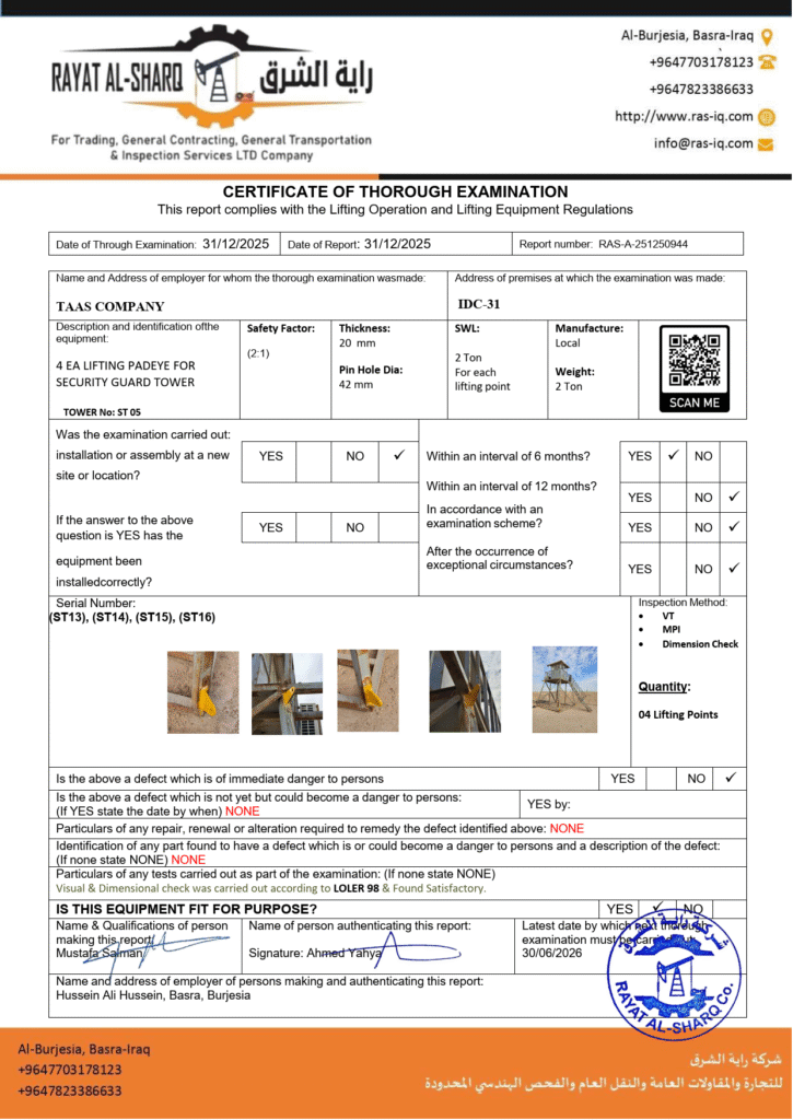 LIFTING INSPECTION