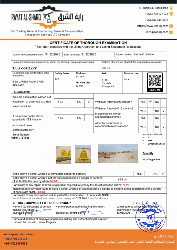 LIFTING INSPECTION