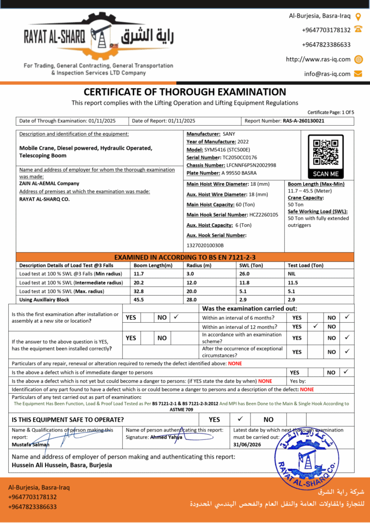 LIFTING INSPECTION