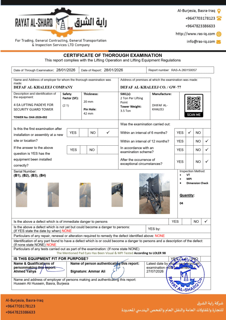 LIFTING INSPECTION