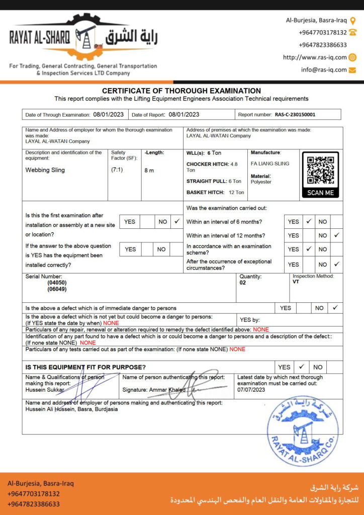 LIFTING INSPECTION