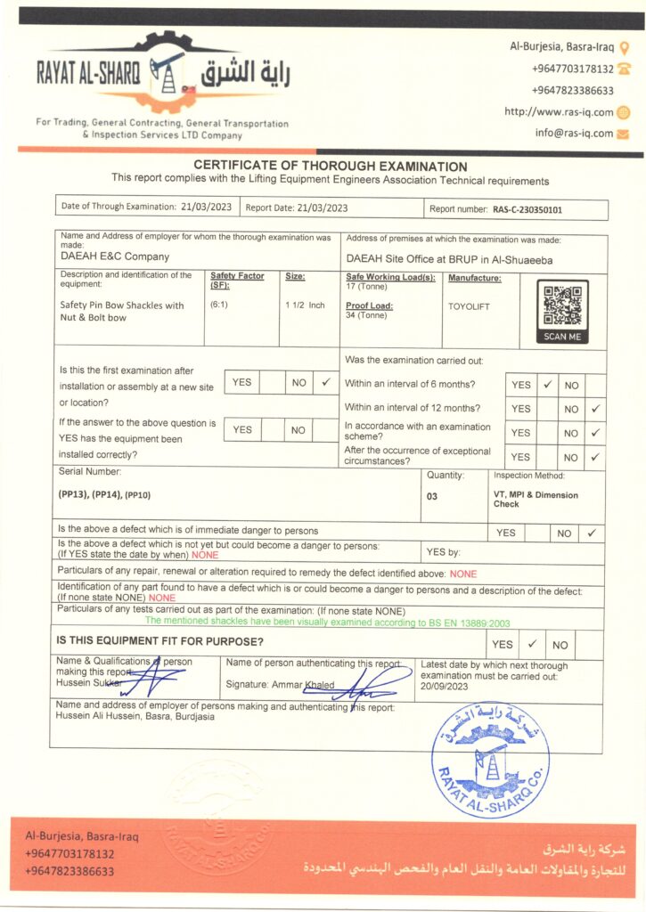 LIFTING INSPECTION