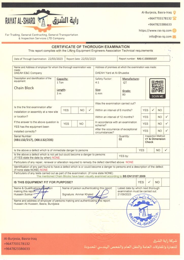 LIFTING INSPECTION