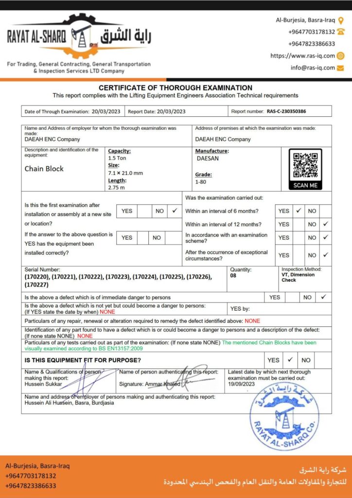LIFTING INSPECTION