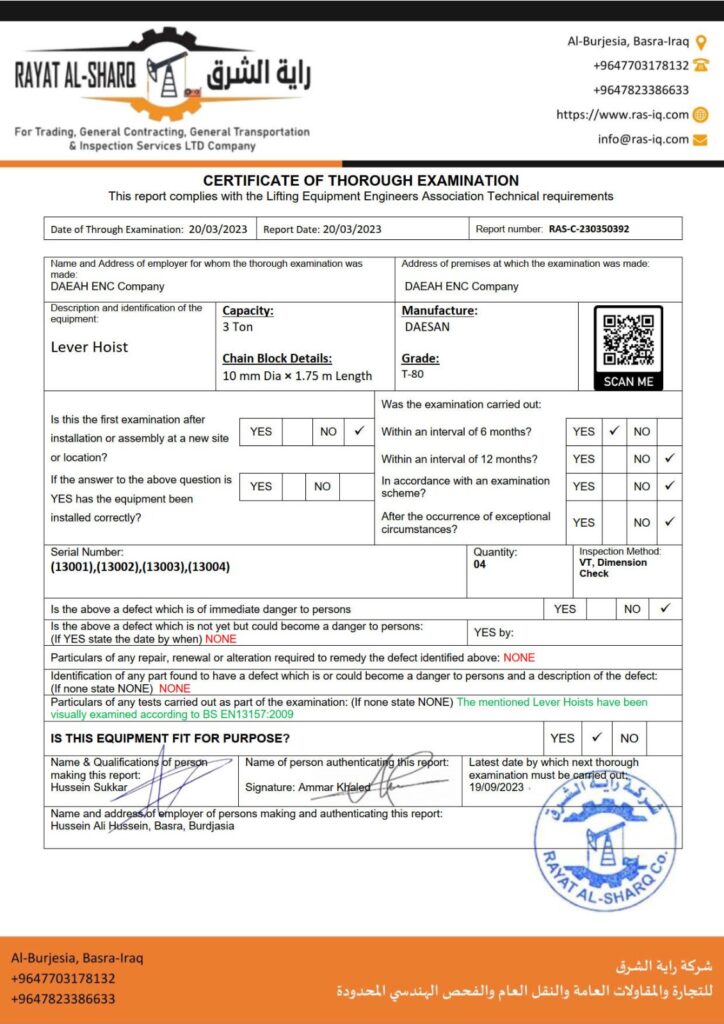LIFTING INSPECTION