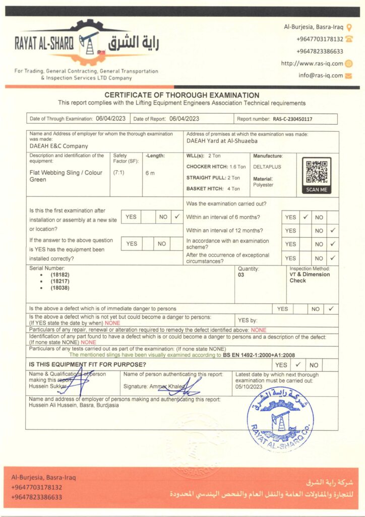 LIFTING INSPECTION