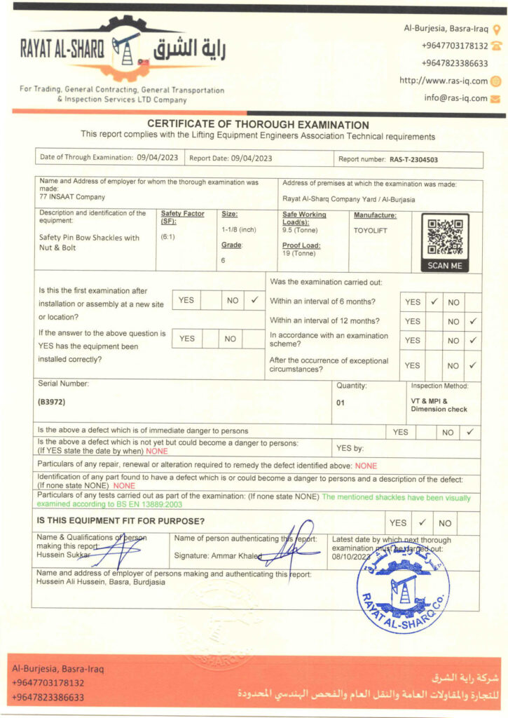 LIFTING INSPECTION